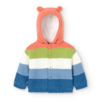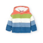 Chaqueta tejido de punto con capota y forro en peluche con botones al frente